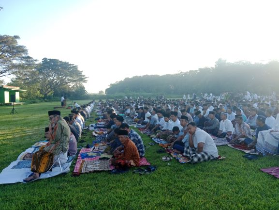 Moyudan , Pdmsleman.Or.Id Alunan takbir, tahlil dan tahmid membahana di bumi sebagai pertanda wujud syukur kepada sang Pencipta. Rumput hijau menjadi tempat bersujud sebagai bukti penyerahan diri kepada Illahi Rabbi. Hal tersebut dilakukan ribuan umat Islam untuk melaksanakan Shalat Idul Adha 1446 H. Salah satunya yang bertempat di Lapangan Sumbersari, Moyudan, Sleman. Sholat Ied yang berlangsung pada hari Jum’at ( 6/6/2025 ) dengan imam dan khatib H. Muhammad Qosim Ausath. S. Ag. Dalam mengawali khotbahnya Qosim mengutarakan bahwa dalam shalat tersebut adalah untuk mengenang kembali sosok agung Ibrahim, AS, Khalilullah, Abu Anbiya, Rasul Ulul Azmi, dan seorang Bapak Tauhid yang diakui agama-agama besar dunia. Sosok pilihan Allah di dunia, dan salah satu orang shaleh di akhirat. Sebagaimana termsktub dalam Al Qur’an Surat Albakarah ayat 130.Ibrahim disebut Bapak Tauhid karena ketegasannya, keistiqomahannya, dan revolusiiner dalam menyerukan keyakinan pada satu Tuhan di saat mayoritas mutlak manusia pada zamannya menyimpang dari Tauhid. ” Ibrahim muda lahir di tengah masyarakat yang kental dengan praktik zodiak, menyembah berhala dan bintang-bintang. Namun dengan akal jernihnya, Ibrahim muda tetap teguh dan kuat dalam pendirian.” Tandasnya. Lebih lanjut Qosim mengungkapkan bahwa Tauhid yang lurus pasti akan melahirkan perbuatan lahir batin yang lurus. Sebab ia lahir dari cinta kepada Allah. Salah satu puncak ketulusan iman, adalah mendermakan yang terbaik yang dimilikinya untuk dipersembahkan kepada-Nya sesuai perintah Allah dalam Surat Al-Imran ayat 92.” Pada praktiknya manusia tidak semudah membaca kisah dan berita. Faktanya, dalam hal berderma ini, kita semua tanpa kecuali memiliki watak buruk dalam jiwa.” Ujar QosimQosim. Sifat tamak merasuki jiwa seseorang, padahal tamak muncul karena hawa nafsu. Ketamakan adalah hasrat yang tak akan pernah terpuaskan, keinginan berlebih, yang tidak lagi mempedulikan etika dan dampaknya pada orang lain. ” Pada hari ini kita diperintahkan untuk berkurban, sebagai simbol menyembelih ketamakan terhadap segala sesuatu yang kita cintai di dunia ini.” Imbuh Qosim. Di akhir khutbahnya Qosim mengajak jamaah untuk tunduk patuh dengan memelihara dan menjaga shalat 5 waktu. ” Dengan shalat melatih kita semua merendahkan diri, melatih kepstuhan hati, dan melatih menggunakan anggota badan untuk taat kepada Allah.” Pungkasnya. ( Sugiyanto PCM Moyudan)