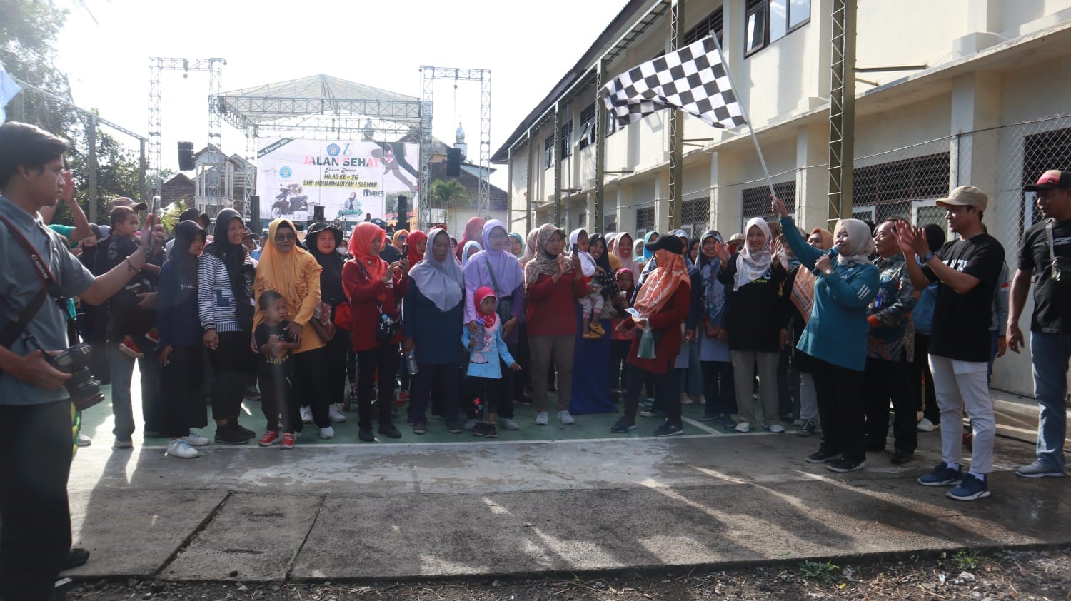 Sleman, PDMSleman.Or.Id Dalam rangka Milad 76 SMP Muhammadiyah 1 Sleman (Musela), mengadakan jalan sehat yang merupakan puncak dari serangkaian kegiatan yang diadakan di sekolah. Acara jalan sehat yang berpusat di lapangan olahraga SMP Muhammadiyah 1 Sleman ini mencetak tiket sebanyak 4.000 dan dihadiri sebanyak 3.500 peserta dengan rute 3 Km pada Ahad 18 Februari 2024. Acara ini dihadiri oleh Bupati Kabupaten Sleman Dra. Hj. Kustini Sri Purnomo sekaligus melakukan pelepasan peserta jalan sehat. Dalam sambutannya menyampaikan “selamat milad ke – 76 untuk SMP Muhammadiyah 1 Sleman, semoga tambah berkemajuan dan senantiasa mencetak lulusan–lulusan yang berprestasi dan bertaqwa dan menghimbau masyarakat umum untuk jangan ragu menitipkan anak di SMP Muhammadiyah 1 Sleman karena terbukti banyak lulusan yang dapat dipertanggungjawabkan keagamaannya”. Kustini juga menghimbau untuk warga Sleman bangga menggunakan produk dalam negeri terutama batik Parijoto. Hadir dalam acara tersebut Panewu Anom Kapanewon Sleman, PCM Sleman, Kepala Dukuh Panggeran, Kepala Sekolah SMK/SMA dan SD/MI mitra sekolah, dan seluruh guru, karyawan, peserta didik, wali murid, serta masyarakat umum. Tampak terbersit kegembiraan dan antusias peserta jalan sehat saat MC Devitri Rahmawati dan Irvan Yanuar Arifin mulai membagikan doorprize mulai dari mesin cuci, televisi, kipas angin, mejikom, dan alat elektronik lainnya serta doorprize utama yaitu sepeda motor Yamaha. Dalam sambutannya kepala sekolah SMP Muhammadiyah 1 Sleman Bapak Amin Darojat, S.Pd.I menyampaikan “ dengan slogan “Musela Langkung Sae“ SMP Muhammadiyah 1 Sleman senantiasa melakukan perubahan – perubahan agar tetap menjadi sekolah yang mumpuni dalam mendidik siswa – siswa. “ Alhamdulillah acara jalan sehat ini dapat dilaksanakan dengan baik dan dimeriahkan oleh Damara de dan Fafa Vadesta. Kontributor : Wahyu Jati P SMP Musela Editor : Arief Hartanto MPI PDM Sleman