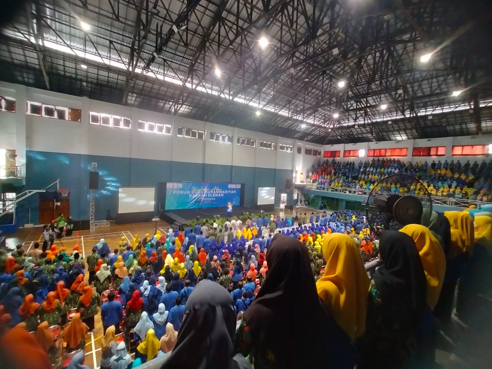 Slemn, Pdmselan.or.id GOR Pangukan Sleman, Jum’at, 10 Jumadil Awal 1445 H/24 November 2023 digelar acara Konsolidasi Akbar Forum Guru Muhammadiyah Sleman. Kegiatan yang dihadiri ribuan guru Muhammadiyah se Sleman ini penuh dengan agenda dan acara seperti Pra acara tampil IGABA Kabupaten Sleman juara 1 nasional 2023 senam irama, dibuka pra acara band kolaborasi SMP Muhammadiyah di Sleman. Sementara itu Syauqi Soeratno angoota Majelis Ekonomi PP Muhammadiyah dalam kesempatan tersebut menyampaikan “ bicara tentang guru terutama guru Muhammadiyah merupakan gabungan kekuatan fisik, tentang kebermanfaatan, diawali dengan keikhlasan melebur bersama menjadi keteladanan”. Sebagaimana dalam surat Al Mujadah, Allah janjikan kenaikan beberapa tingkat orang berilmu dari yang tidak berilmu. Keikhlasan hubungannya dengan Allah bukan dengan Kepala Sekolah, bukan dengan PDM, bukan berapa gaji yang diterima tapi dengan Allah Selingan Lagu himne Guru oleh Harsoyo SD Muhammadiyah CC dlanjutkan sambutan Ketua Forum Guru Muhammadiyah Sleman Sigit S.Pd dan ucapan terimakasih kehadiran dan partisipasi semua guru anggota FGM yakni organisasi profesi yang menaungi guru guru Amal Usaha yang harapannya menjadi pendorong semangat berMuhammadiyah yang berkemajuan. H. Harjaka selaku Ketua PDM Slema menandaskan kepada segenap guru Muhammadiyah yang hadir dalam kesempatan ini “ saya berharap agar guru-guru Muhammadiyah Kabupaten Sleman ikhlas mendidik membina murid-murid kita serta memiliki rasa senang tentang ilmu pengetahuan”. Ada tiga macam jenis yakni Guru makruh yang tidak diinginan guru dan siswa, Mubah yang ada dan tidak adanya tidak berpengaruh pada sekolah maupun siswa serta Wajib dimana hadirnya senantiasa diharap-harapkankan guru dan siswa, dan betul-betul mendidik membina. Selingan Weka arianto S. Pd. Stand up komedi di dunia pendidikan juga tampil menjadi hiburan segar. sekda Sleman Hardo K sampaikan bawa Sepanjang didasari ketulusan dan keikhlasan, insyaAllah kita mampu bersama-sama mendidik putra putri bangsa unt mewujudkan masyarakat indonesia adil makmur dan sejahtera. Dok. Konsolidasi Akbar FGM 23: https://drive.google.com/drive/folders/1OEaLfphTDfE6apwJAh_KOKhRbp59Ip-U?usp=sharing Ketua Pengurus Forum Guru Muhammadiyah Pusat Sutomo MAg menekankan “ setidaknya ada tiga langkah yang perlu dilakukan untuk membangkitkan sekolah Muhammadiyah. Pertama, branding sekolah melalui medsos, website, dan media. Kedua, mabah mindset seluruh jajaran yang terkait dengan sekolah dengan semangat berkemajuan. Ketiga, mencetak produk yang terbaik dalam pendidikan”. Reportase Pamuji SS. S.SI, KS SMKM 2 Turi, MPI PDM Sleman Editor Arief Hartanto MPI PDM Sleman.