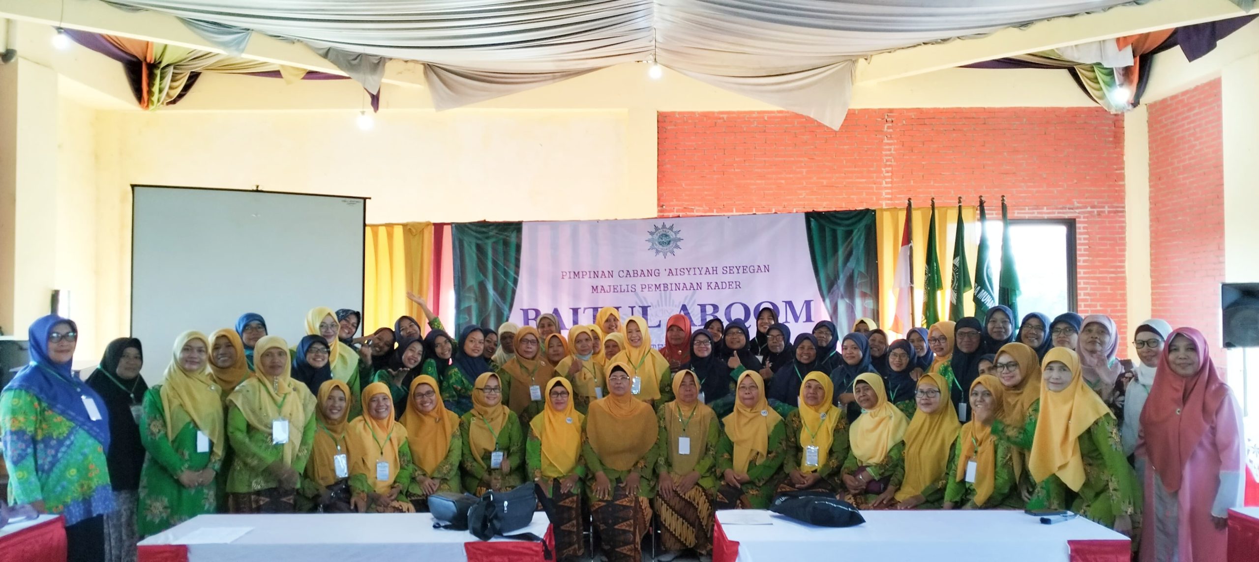Seyegan, Pdmsleman.Or.Id Pimpinan Cabang ‘Aisyiyah Seyegan mengadakan Baitul Arqom pada hari Sabtu sampai Ahad tanggal 27 – 28 Januari 2024 di RM Genduk Wulan Margodadi Seyegan. Baitul Arqom yang merupakan program dari Majelis Pembinaan Kader  ini diikuti oleh 74 peserta yang terdiri dari unsur  Pimpinan Cabang   dan Pimpinan Ranting Aisyiyah se-kapanewon Seyegan, serta guru-guru TK ABA dan KB Aisyiyah di Kapanewon Seyegan. Kegiatan BA mengambil tema ” Penguatan Ideologi dan Organisasi untuk Gerakan Aisyiyah Berkemajuan”. Acara yang dikemas secara padat dan bermakna ini diharapkan mampu meningkatkan semangat dan motivasi peserta dalam ber ‘Aisyiyah serta mampu mengimplementasikan dalam kehidupan sehari hari baik itu secara individual maupun kelompok yaitu dalam berorganisasi di ‘Aisyiyah maupun Sekolah/lembaga milik Amal Usaha Muhammadiyah tempat sebagian peserta mengabdi. Baitul Arqom dimulai hari Sabtu pukul 7.30 WIB yang diawali pemeriksaan kesehatan gratis dari tim kesehatan PKU Muhammadiyah Yogyakarta dilanjutkan Pembukaan yang ditandai dengan penyematan tanda peserta Baitul Arqom oleh Ketua Pimpinan Cabang ‘Aisyiyah Seyegan ibu Hj. Sarju dan dihadiri pula oleh Wakil Ketua Pimpinan Daerah ‘Aisyiyah Sleman yang membidangi Majelis Pembinaan Kader  yaitu Ibu Dra. Hj. Suharti sekaligus membuka kegiatan Baitul Arqom. Turut hadir pula  Ketua PCM Seyegan yaitu Bapak Drs. H. Tri Subandi, M.Pd., dan perwakilan dari PCNA Seyegan. Seluruh peserta Baitul Arqom mengikuti kegiatan yang terdiri dari 7 materi utama yaitu : (1) AD ART ‘Aisyiyah oleh Ibu Hj. Umi Eni, S.Ag., (2) Peran IGABA dalam ber-Muhammadiyah oleh Ibu Sasmiyati, S.Pd.AUD, M.Pd., (3) Manajemen Organisasi oleh Bapak H. Nashirun, S.AP., (4) Etos Kerja dalam Mengemban Amanah oleh Ibu Dra.Hj. Nasriyatun, (5) Ideologi Muhammadiyah oleh Bapak H. Arif Sulistya, S.E., (6) Tuntunan Sholat Malam dan Dzikir oleh Ibu Hj. Sartini, BA., (7) Praktek Ibadah Sholat Tahajud dan Dzikir Pagi dipimpin oleh Bapak Nurkhoirudin. Acara Baitul Arqom ditutup pada hari Ahad 28 Januari 2024 pukul 06.30 WIB oleh Wakil Ketua Pimpinan Cabang ‘Aisyiyah Seyegan Ibu Hj. Umi Eni, S.Ag dan ditandai dengan penyerahan sertifikat secara simbolis kepada peserta oleh ketua Majelis Pembinaan Kader Pimpinan Cabang ‘Aisyiyah Seyegan Ibu Muninggar, S.Ag. “ Dan yang paling istimewa pada acara Baitul Arqom ini adalah setelah penutupan, peserta tidak langsung pulang, melainkan bersama-sama menuju ke UMY untuk mengikuti hari Ber-‘Aisyiyah yang diadakan oleh Pimpinan Wilayah ‘Aisyiyah DIY”  sebagaimana disampaikan Dhian Navitri sie Acara pada Ahad Siang. Reportase  Dhian Navitri PCA Seyegan     Editor  Arief Hartanto MPI PDM Sleman