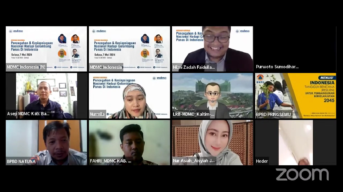 Yogyakarta, Pdmsleman.Or.Id Muhammadiyah Disaster Management Center (MDMC) ajak masyarakat ber-tabayyun dalam menanggapi isu gelombang panas (heatwaves) akibat kenaikan suhu bumi mencapai maksimal yang terjadi di Indonesia akhir-akhir ini. Melalui webinar “Pencegahan dan Kesiapsiagaan Nasional Hadapi Gelombang Panas di Indonesia” yang dilaksanakan pada siang ini (7/5), MDMC mengundang Badan Meteorologi Klimatologi dan Geofisika (BMKG) dan tenaga kesehatan untuk menjawab fenonema heatwaves secara ilmiah. Dr. Siswanto, M.Sc., Sub Koordinator Bidang Produksi Informasi Iklim dan Kualitas Udara BMKG, menyebutkan bahwa suhu panas yang terjadi di Indonesia saat ini tidak termasuk dalam fenomena heatwaves, akan tetapi sebagai akibat dari perubahan iklim. Sebagaimana pernyataan resmi yang telah diinfokan oleh BMKG bahwa Indonesia tidak termasuk dalam wilayah gelombang panas karena geografi Indonesia berada pada titik evakuator dan terdiri dari lautan dan kepulauan. Adapun salah satu tanda untuk dapat dikatakan sebagai fenomena gelombang panas adalah terjadinya kenaikan suhu panas yang tidak normal dan terjadi selama 5 hari berturut-turut, sedangkan Indonesia tidak mengalami hal tersebut. Di sisi lain, cuaca ekstrem yang saat ini terjadi tetap harus dikaji penyebab dan dampaknya. Maka dari itu Budi Setiawa, Ketua MDMC menghimbau seluruh wilayah untuk menyiapkan diri hadapi perubahan iklim saat ini. Sebagaimana release yang diterima redaksi petang ini. “Fenomena ini mengajak kita (MDMC) untuk berpikir serta bersiap-siap, tentu kesiapan membutuhkan pemahaman yang serius tentang heatwaves. Jangan sampai kita mengabaikan peringatan dari lembaga resmi” ujarnya Menurut Budi, apapun kondisinya (fenomena iklim) jika berdampak pada keberlangsungan hidup seseorang maka antisipasi adalah kewajiban bagi MDMC dengan memberikan edukasi dan pemahaman kepada masyarakat. Jika dipandang secara kesehatan, fenomena cuaca ekstrem saat ini memang memiliki dampak cukup serius terutama bagi anak-anak, lansia dan penyandang komorbid. dr. Nurmila Sari, Sp.PD., dari Fakultas Kedokteran Universitas Muhammadiyah Makassar, menyampaikan bahwa tekanan panas yang berlebih dapat menimbulkan terjadinya penyakit heat stress. Maka dari itu, selain dengan pemahaman mengenai perubahan iklim yang baik, tindakan preventif untuk mengurangi risiko dampak kesehatan perlu dipersiapkan. Seperti pemenuhan kebutuhan air dalam tubuh, menghindari kontak langsung dengan matahari dan penggunaan bahan pakaian yang menyerap keringat.